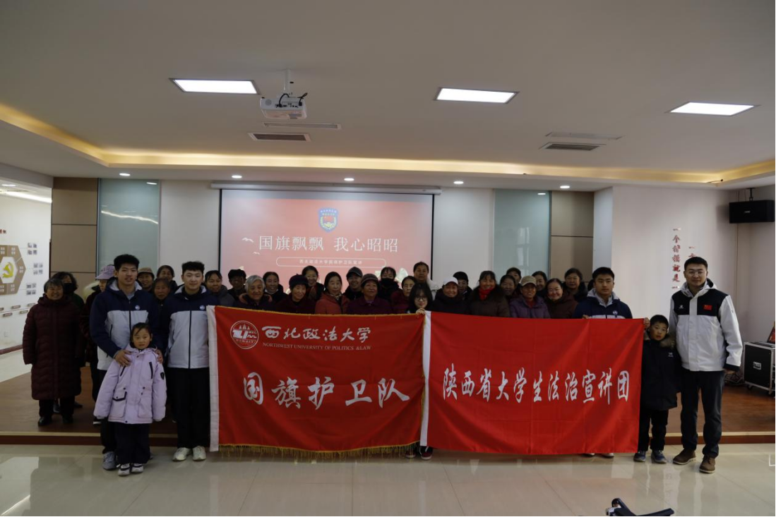 在延期间,西北政法大学公安学院(公共安全法学院)“先锋”法治文化宣讲团走进延安市宝塔区贵人峁社区党群服务中心,开展以“国旗尊严,法治守护”为题的爱国主义法治教育宣讲,将红色基因与法学专业特色深度融合,以实践践行服务社会的使命担当。
