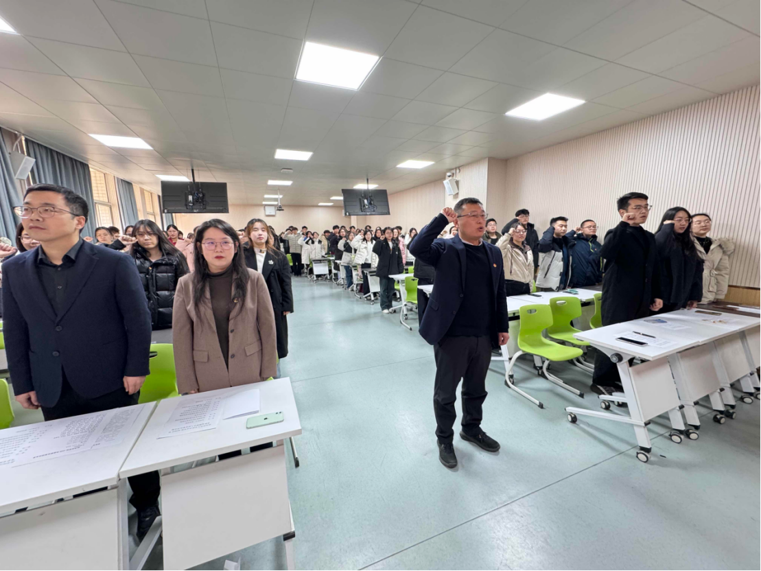 12月29日中午,经济法学院团委在长安校区正心楼306教室隆重举行经济法学院2025年下半年新发展团员入团宣誓仪式。校团委副书记王洋、经济法学院党委副书记李恒、经济法学院第二团总支书记李冬冬、第三团总支书记张兴浩以及辅导员吕悦、来沅晖、王可卓老师参加活动。宣誓仪式由学院团委书记王文老师主持。